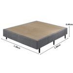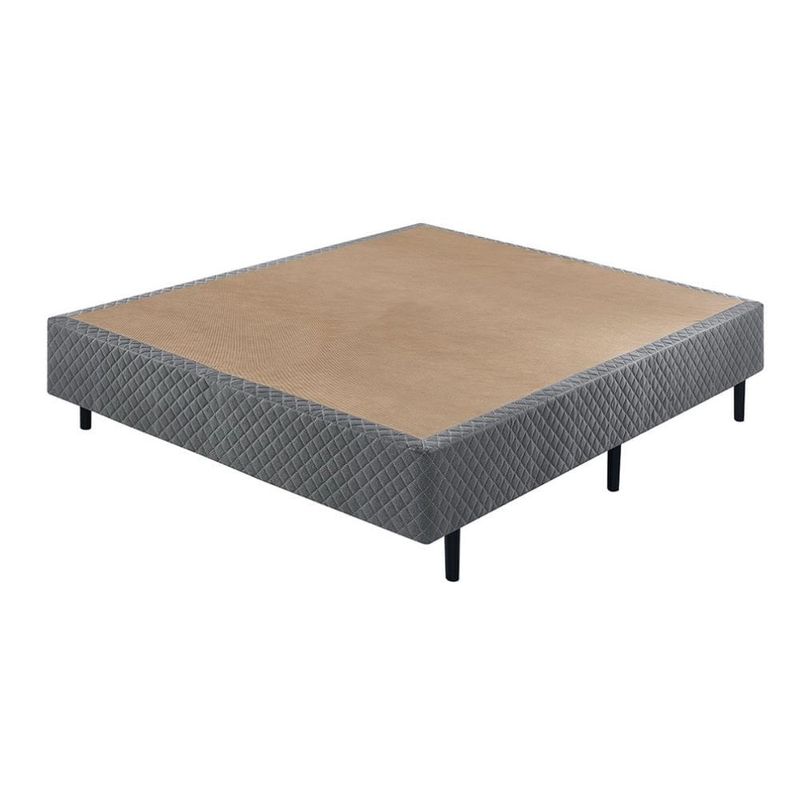 Base Box Casal: Estrutura robusta em madeira de reflorestamento, suporte de 200 kg, elegância e conforto.