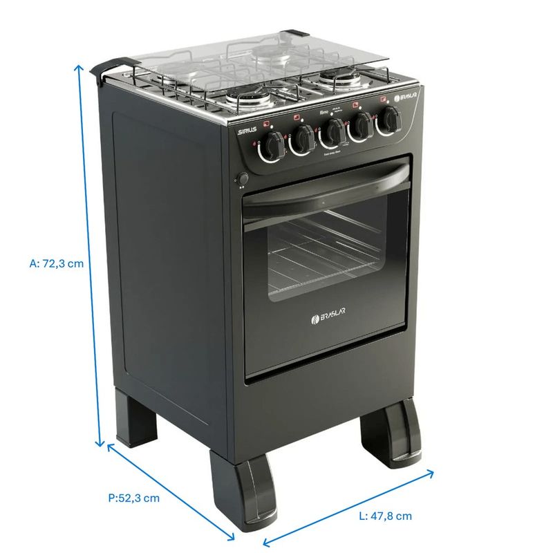 Fogão 4 Bocas Braslar: Acendimento automático, design contemporâneo e forno espaçoso para sua cozinha.