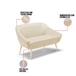 A poltrona Giovana é uma peça indispensável para momentos de descanso depois de um dia longo de trabalho. E não há nada melhor que poder relaxar em um móvel de extremo conforto não é mesmo! Afinal ela dará aquele toque de perfeição ao seu ambiente. Ela conta com uma estrutura reforçada em madeira eucalipto que oferece alta resistência e qualidade ao móvel. Produzida com Pés Palito Natural que suporta até 120kg, seu estofamento é com espuma de densidade D-23. A namoradeira 02 Lugares traz consigo um toque de delicadeza por conta do formato arredondado de seu encosto, garantindo além de muito conforto uma personalidade única para seu ambiente. Produzida em madeira reflorestada de eucalipto, estofada em Espuma D-23, os pés são em madeira garantindo uma maior resistência ao produto. Sua durabilidade e conforto é seu diferencial. Adquira já seu Kit 01 Namoradeira 02 Lugares e 01 Poltrona no tecido Corino no tom Bege.Dimensões da PoltronaAltura total: 86 cmLargura total: 79 cmProfundidade total: 70 cmAltura do encosto: 44 cmLargura do assento: 50 cmProfundidade do assento: 52 cmAltura do chão ao assento: 45 cmEspessura do assento: 17 cmAltura do chão ao braço: 50 cmAltura interna do braço: 15 cmTamanho dos pés: 30 cmEspessura do braço: 9 cmPeso: 14 kgDimensões da NamoradeiraAltura total: 85 cmLargura total: 132 cmProfundidade total: 70 cmAltura do encosto: 45 cmLargura do assento: 105 cmProfundidade do assento: 17 cmAltura do chão ao assento: 45 cmEspessura do assento: 17 cmAltura do chão ao braço: 50 cmAltura interna do braço: 15 cmTamanho dos pés: 30 cmEspessura do braço: 9 cmPeso: 20 kgEspecificações do ProdutoEstrutura: Madeira EucaliptoEspuma: D-23Tecido: CorinoTipo de pés: Pés Palito NaturalPeso suportado: Até 120 KgGarantia: 90 dias contra defeito de fabricaçãoMontagem: O produto vai montado, apenas rosquear os pésInstruções de limpeza: Utilizar um pano limpo e levemente úmidoVocê irá receber: 02 Volumes com 01 Namoradeira e 01 PoltronaObservações Relevantes- Todos os produtos vão embalados com total segurança;- As cores dos produtos podem sofrer alterações dependendo do seu monitor;- Para futuras compras, não garantimos a mesma tonalidade de cor, pois existe variação a cada lote do fabricante do tecido;- As imagens são meramente ilustrativas, não acompanham objetos de decoração e eletros;- Confira as dimensões do produto no momento da compra e certifique-se de que passará normalmente por escadas, elevadores, portas e corredores;- Importante: Por se tratar de estofado as medidas podem ter uma pequena variação em até 3 cm;- Não nos responsabilizamos no ato da entrega por montagens, desmontagens, instalações de produtos;- Não nos responsabilizamos no ato da entrega por subir escadas, elevadores, nem utilização de guinchos ou equipamentos similares para acesso a pisos superiores em apartamentos;- A entrega do produto é realizada em todo território nacional, até onde as rodovias alcançam, entregas fluviais ou aéreas devem ser cotadas a parte;- Observando as orientações acima, evita-se futuros desagrados ou imprevistos com a entrega do produto. Havendo despesas adicionais, serão de responsabilidade do cliente;