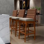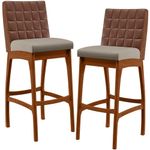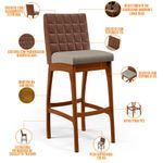 Entregando muita excelência, o Kit 02 Banquetas Altas Cozinha Sala Jantar Fixa Mila B04 Couríssimo Marrom Linho Bege - Lyam Decor é o complemento que faltava para deixar sua casa ainda mais extraordinária. Seu encosto com costura em padrão quadriculado e assento estofados, centralizam em si uma graciosidade estonteante, sem perder todo o conforto. A estrutura em madeira, na cor nozes, também é digna de notoriedade, por imprimir bastante personalidade a sua decoração. Vale ressaltar ainda, o apoio para os pés que garante maior segurança à banqueta.