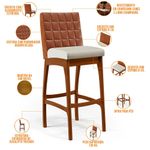 Entregando muita excelência, o Kit 04 Banquetas Altas Sala De Jantar Fixa Mila B04 Couríssimo Camel Linho Champagne - Lyam Decor é o complemento que faltava para deixar sua casa ainda mais extraordinária. Seu encosto com costura em padrão quadriculado e assento estofados, centralizam em si uma graciosidade estonteante, sem perder todo o conforto. A estrutura em madeira, na cor nozes, também é digna de notoriedade, por imprimir bastante personalidade a sua decoração. Vale ressaltar ainda, o apoio para os pés que garante maior segurança à banqueta.