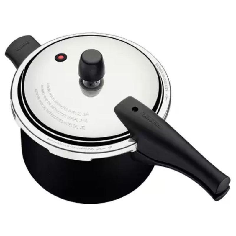 Além disso, ela é resistente, eficiente e segura, pois possui válvulas de segurança para que você possa cozinhar tranquilamente e sem receios. Seus cabos e alça são em baquelite antitérmico e garantem ainda mais segurança durante o uso, pois reduzem a propagação do calor. Com um design moderno, ela vai levar muito mais estilo e praticidade para sua cozinha!.