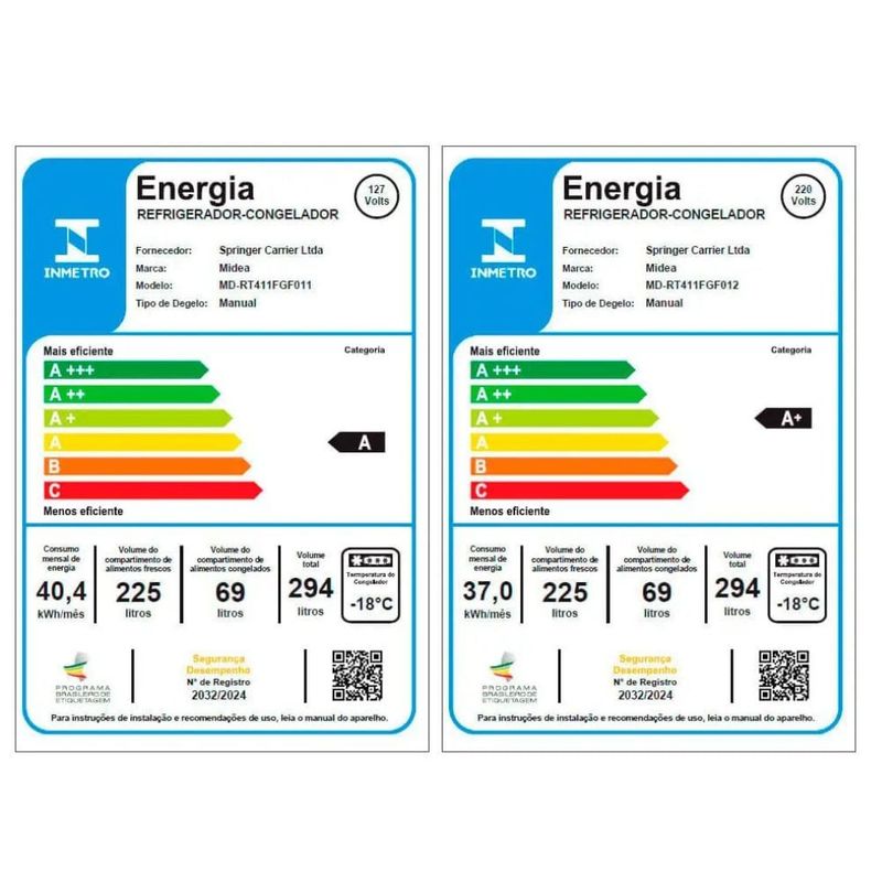 A Geladeira Midea Duplex 294L oferece ampla capacidade com 294 litros totais, incluindo um espaçoso freezer de 69L. Sua organização inteligente é facilitada por prateleiras de vidro que simplificam a limpeza e um gavetão hortifruti para armazenar frutas e verduras. Com eficiência energética A ou A+, contribui para a economia doméstica. O sistema Cycle Defrost garante a conservação ideal dos alimentos.