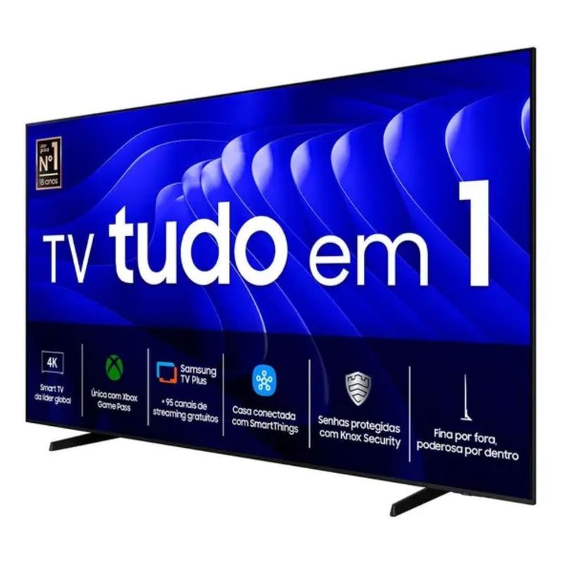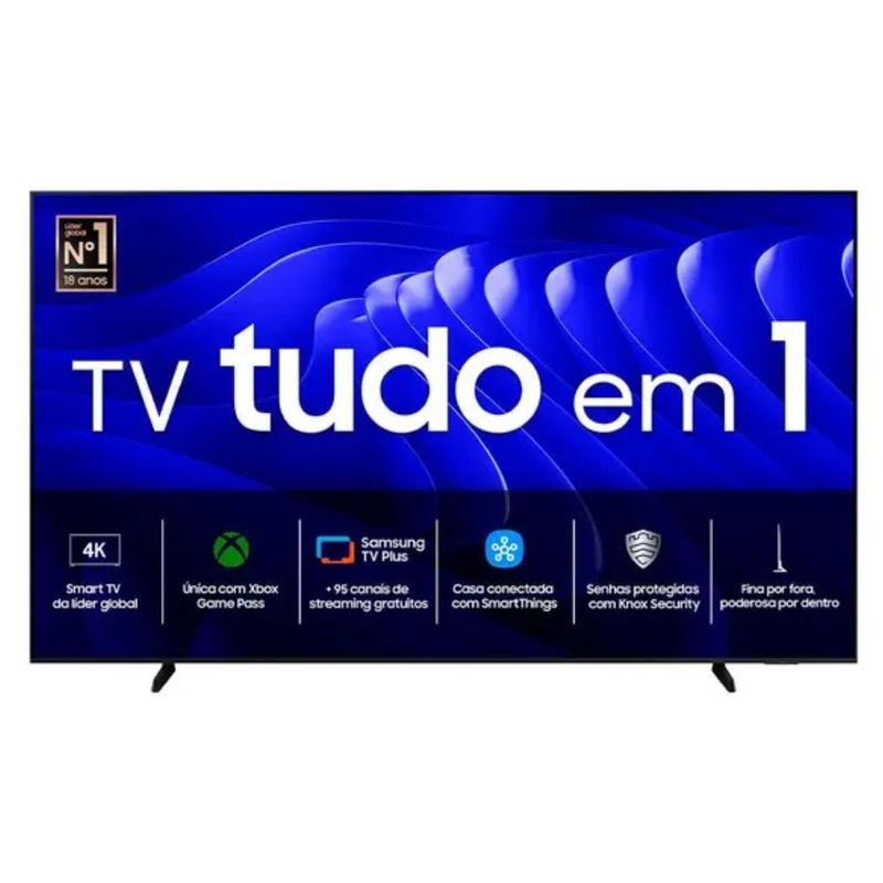A Smart TV Samsung 98" oferece fluidez com 120 Hz, perfeita para jogos e ação. O Gaming Hub com Xbox Cloud Gaming e VRR/FreeSync Premium garante jogabilidade sem interrupções. Seu design slim e o Smart Control SolarCell unem estilo e praticidade. Com áudio potente de 40W RMS e Dolby Digital Plus, além de 4 HDMI e 2 USB, seu entretenimento é completo.