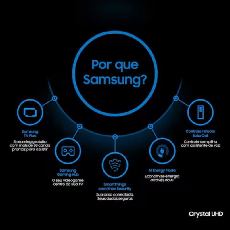 Smart TV Samsung 98": Imersão 4K UHD com Processador Crystal 4K, Gaming Hub e Wi-Fi.